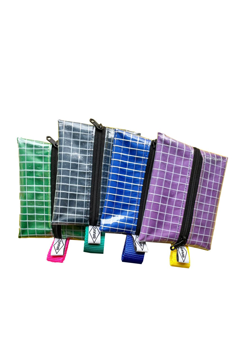 Voici le porte monnaie. Objet plat qui s'ouvre grace à une petite fermeture a glissière ykk de 4mm. Elle est doublée d'une toile nylon de couleur ( bleu, violet, noir, vert, jaune primaire )