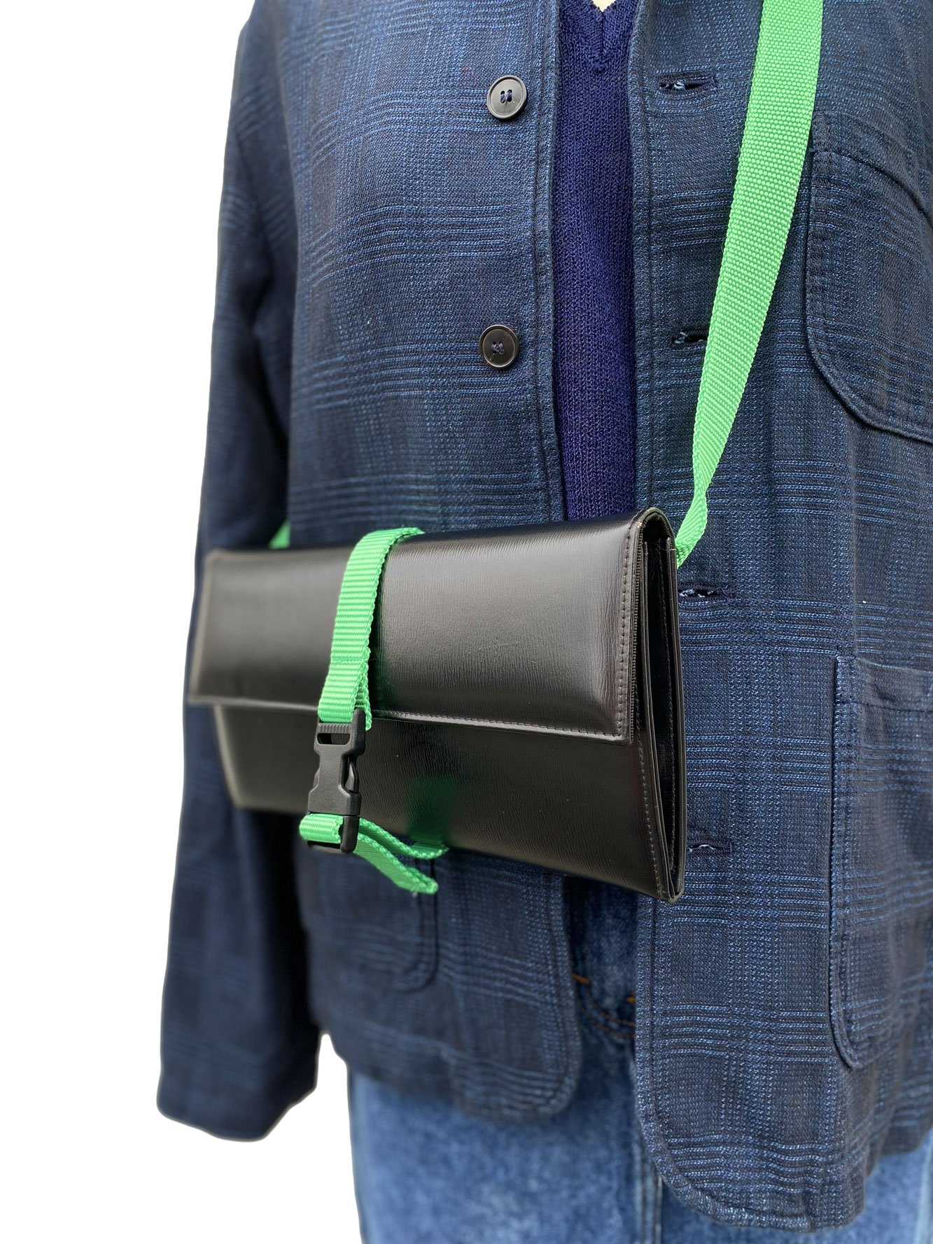 - Peut se porter sur l’épaule, en bandoulière ou autour de la taille