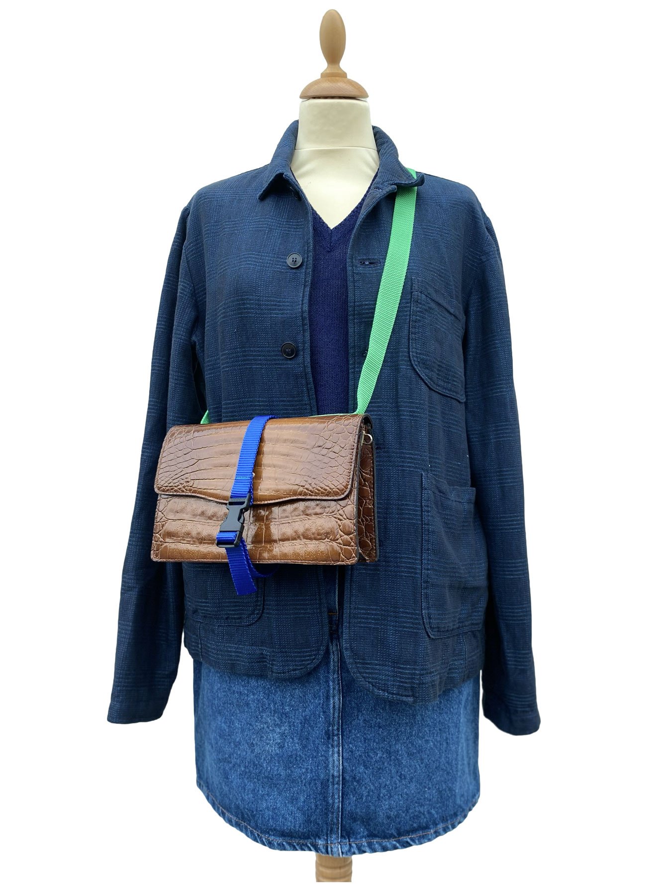 - Sac rectangulaire en cuir imitation corcodile texturé brillant